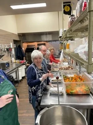 Each week a team of volunteers supports Grace to Go run by St. James Episcopal Church to prepare and package more than 100 healthy meals for distribution to anyone needing them.